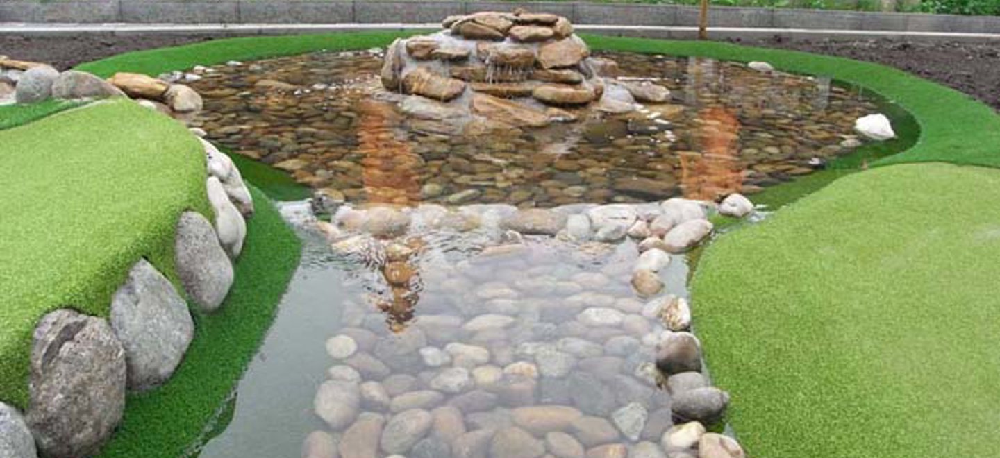 The Adventure golf course, which is located north of Frankfurt, has a nature theme and blends well into the surrounding countryside. It includes a pond with a fountain, while a charming wooden bridge takes players across the water.