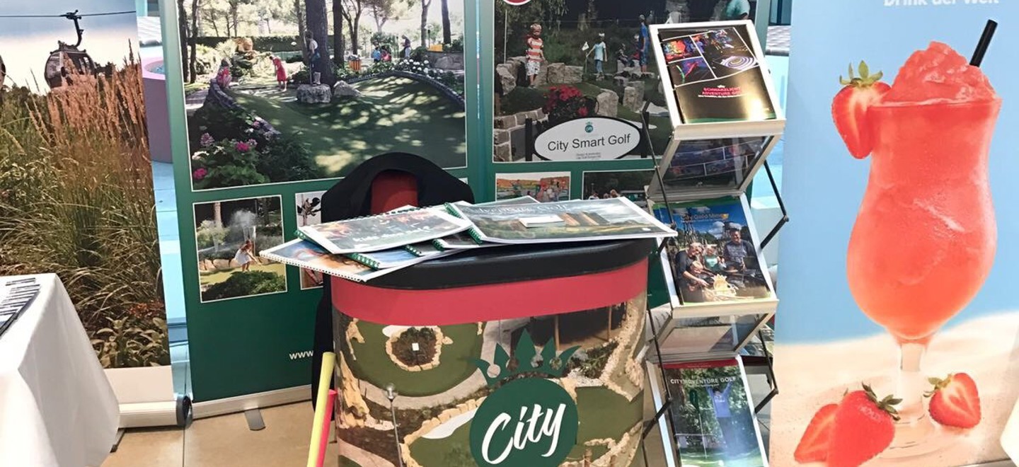 The morning of the second day was dedicated to a small exhibition, arranged individually by associate members (including City Golf), which provided an excellent opportunity to present our latest products, services and successes, and discuss ideas with decision makers from the leisure branch. City Golf Europe erected a small information stand displaying our latest themed Adventure Golf and Blacklight 3D Adventure Golf courses, as well as our bestselling range of City Gold Mines.