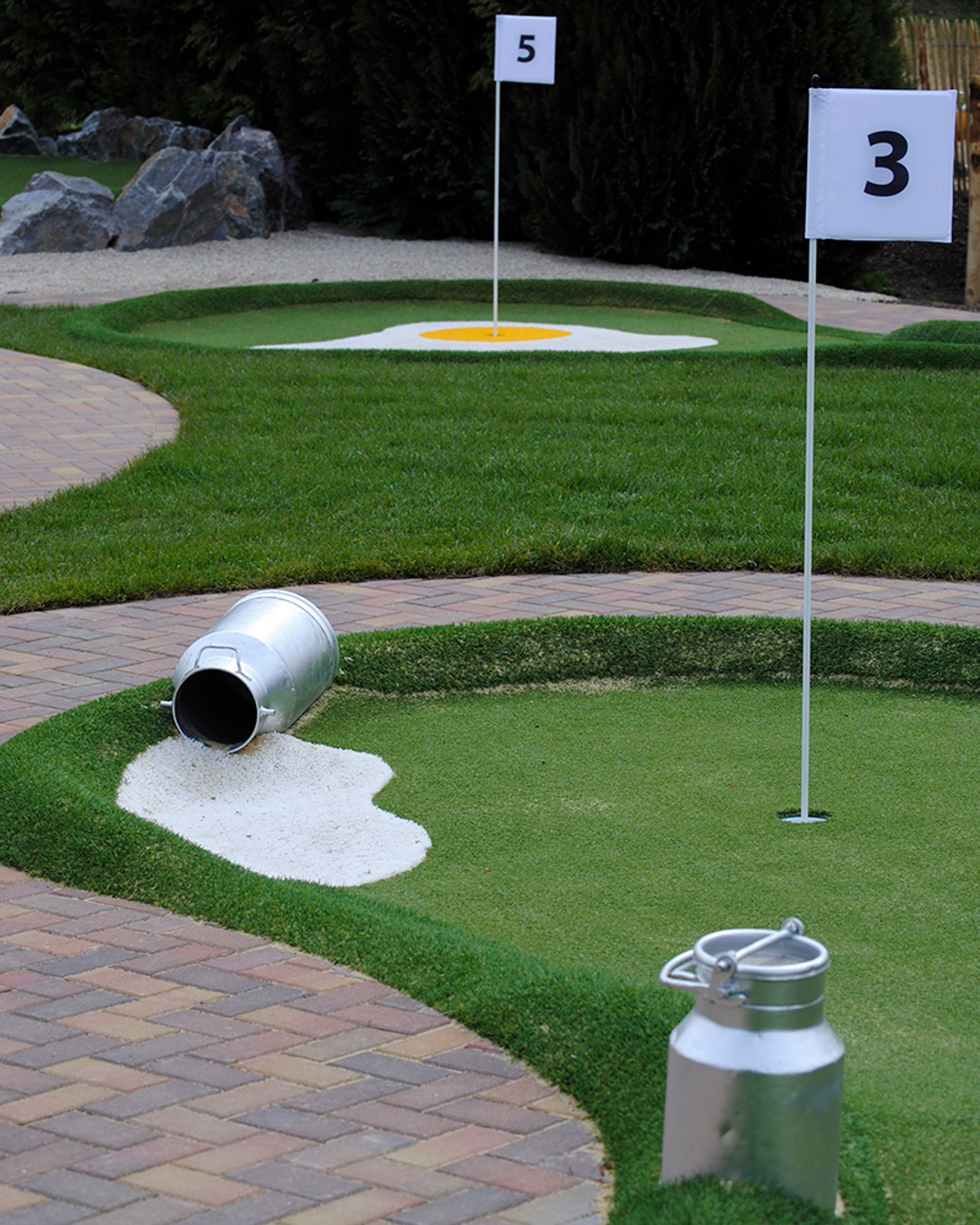 Other variants can be Jungle golf, Pirate golf, Medieval golf or your own choice of theme – Adventure Golf offers courses set in thrilling settings with exotic obstacles. These themes offer many inspiring options for designing your own unique course. This is Adventure golf where only your imagination sets the limits.