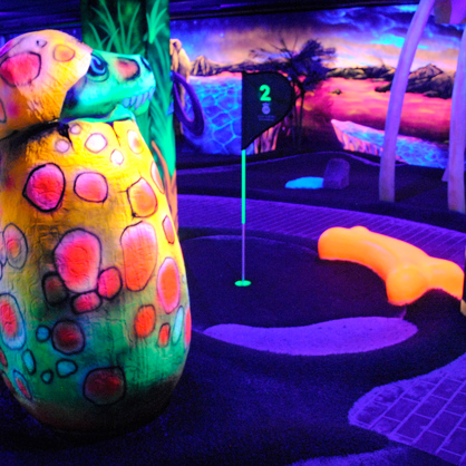 We build indoor and outdoor golf courses, with or without themes. The fact that a course is built indoors doesn’t impose any limits on your imagination or preferences. Indoor installations can be decorated with fluorescent paint that glows in the dark under UV light.