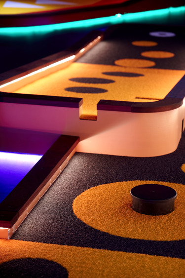 Putt EVO expands the genre of indoor minigolf attractions and take the crowd favourite to a new level. The special and innovative feature of Putt EVO is not only the modern design of the minigolf courses, but above all the various built in lightning effects and features.